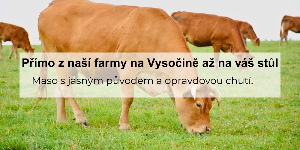 Hovězí pochází z vlastního chovu kříženého plemene Limousine a Salers na Vysočině, kde dbáme na welfare zvířat i šetrný přístup k přírodě. Díky tomu získáváme maso, které je šťavnaté a bohaté na chuť. Zároveň máme zcela pod kontrolou zrání masa- necháváme ho zrát několik týdnů.