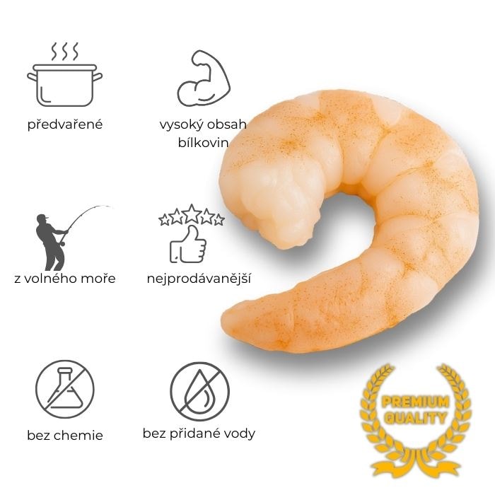 Krevety jsou zcela bez chemie a bez přidané vody; pouze povrchová glazura chrání maso před vymrzáním.