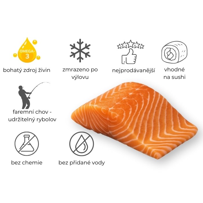 Losos pochází z osvědčených norských farem s ideálními podmínkami pro chov. Steaky jsou precizně zpracované, bez kostí, s dokonale čistou strukturou masa.