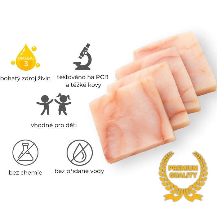 Vynikající kvalita. Po rozmražení téměř nepustí vodu, při úpravě perfektně drží tvar (i při pošírování). Šťavnaté, chutné, naprosto bez pachu rybiny, který tolik lidí odrazuje od konzumace ryb.