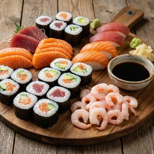 Prémiový sushi výběr – losos, tuňák & studenovodní krevety 1,45kg