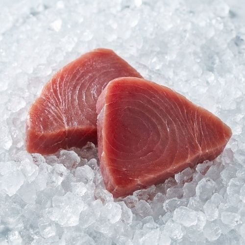Steaky z tuňáka (Thunnus albacares) z loins. Loins jsou dva mohutné svaly podél páteře - nejkvalitnější část ryby.