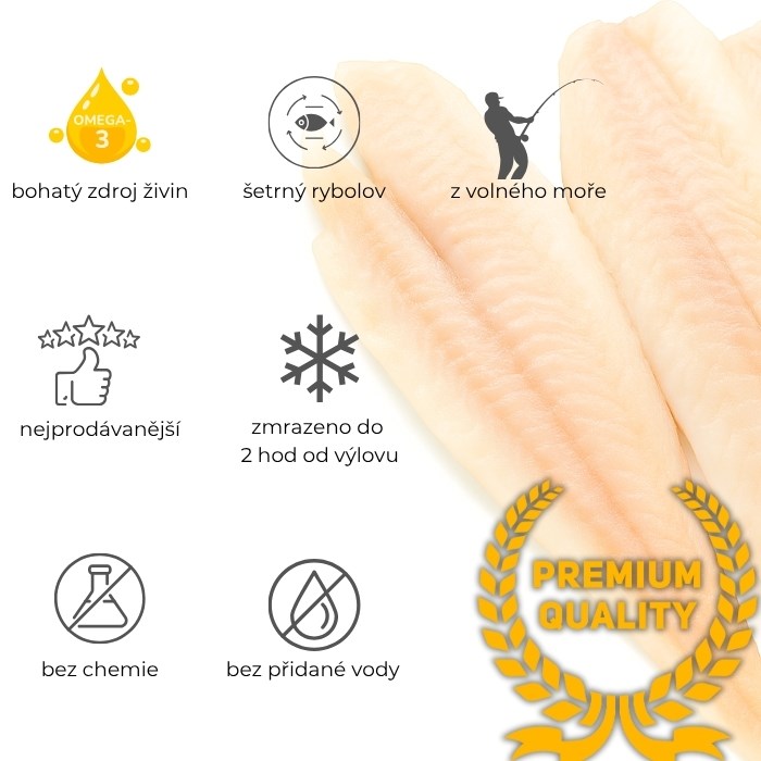 - Zmražení do 2 hodin od ulovení – maso si uchovává přirozenou chuť, jasně bílou barvu a jemnou strukturu.